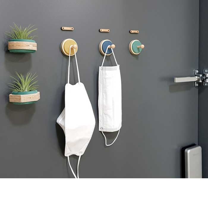 ちょっと使ったマスクをどのように保管していますか? その辺に置いたり、どこに置いたか忘れてしまったりしていませんか? このフックにマスクを掛けて、きちんと整理しましょう! マグネットなので、ドアや冷蔵庫などに取り付けられます。