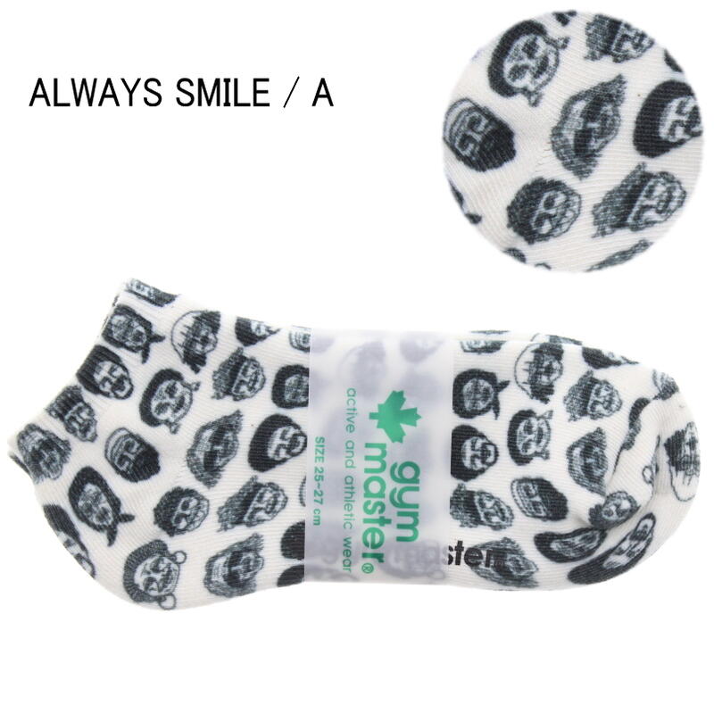 【GOOJ】【商品説明】 人気の「ハッピーペイント」シリーズにソックスが新登場! 写真ではなく、イラストで描かれた絵柄が全面にプリントされたソックスで、 ハッピーな気分になること間違いなし! サンダルにあわせるのがおススメです! 【ブランド】 gym master(ジムマスター) 【モデル】 ハッピーペイント アンクルソックス 【素材】 ポリエステル・綿・その他 【サイズ】 23〜25cm(レディース) 25〜27cm(メンズ)