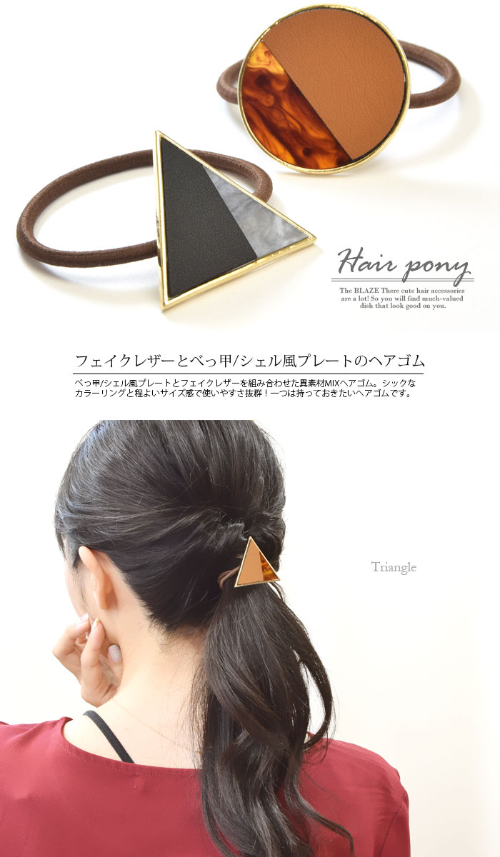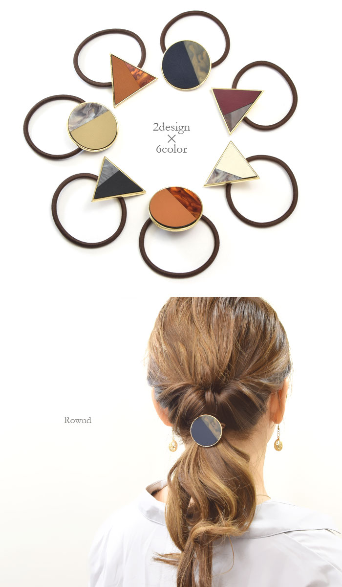 商品名 デザインヘアゴム(フェイクレザー&マーブル) (DPY-780-002) STAFFコメント フェイクレザーとべっ甲などのマーブルカラーを組み合わせた異素材MIXヘアゴム♪