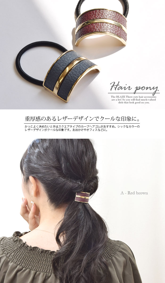【アクセサリービュッフェチケット1000対象】 ゴールド カーブ ヘアゴム レザー風 BLAZE ヘアアクセサリー ヘアアクセ