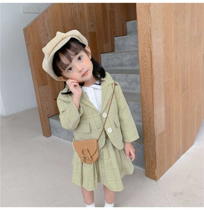 スーツ 子供服 セットアップ フォーマル 長袖 韓国ジャケット + プリーツスカート コート アウター 上下セット 子ども服 女の子 春服 秋服 キッズ 80cm 90cm 100cm 110cm 120cm 130cm ガールズ ジュニア 春 秋 韓国 おしゃれ お出 フォーマルスール 入学式